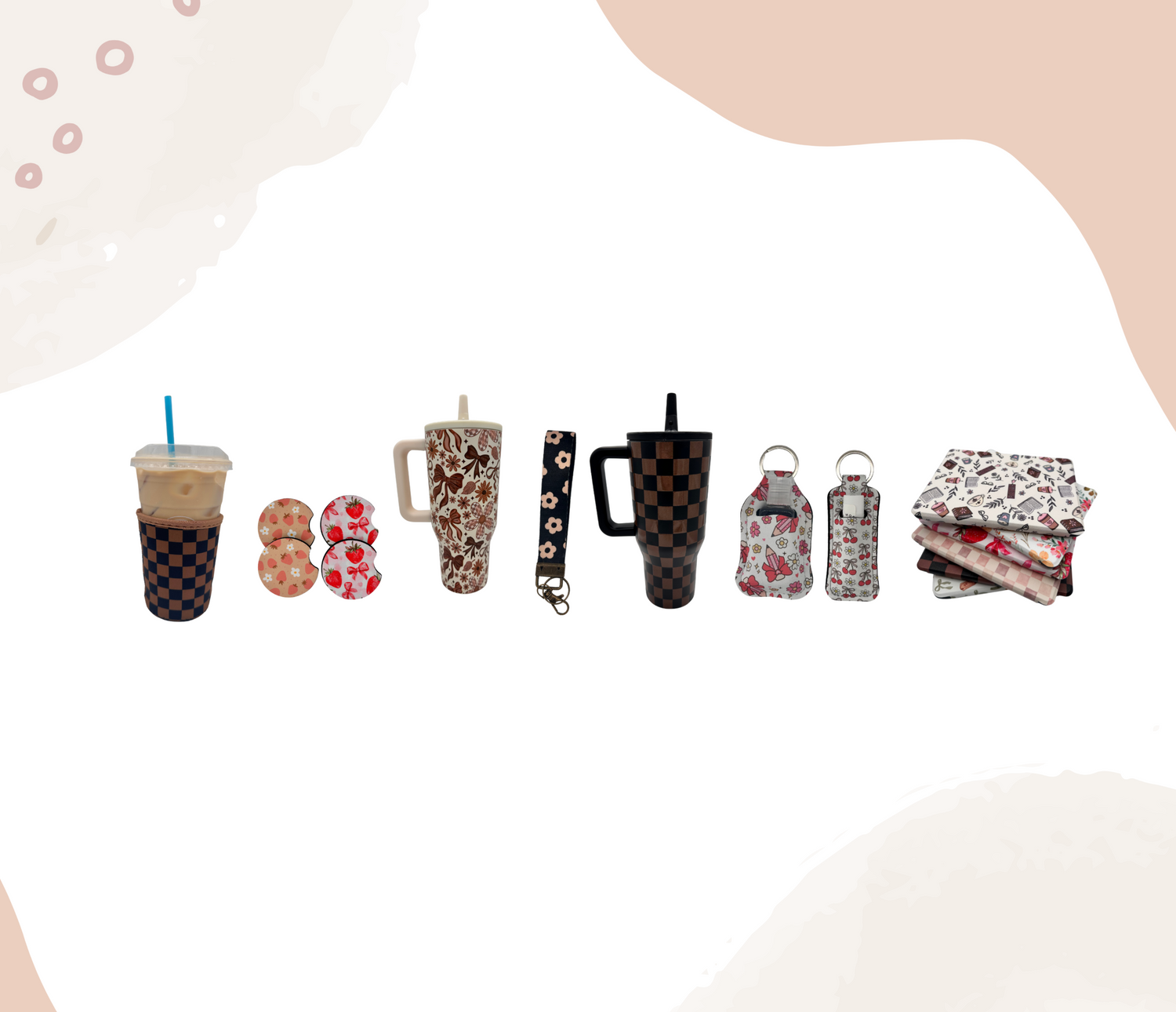Strawberry & Bows Coffee Sleeve Coozie - Sweat Proof & Cute