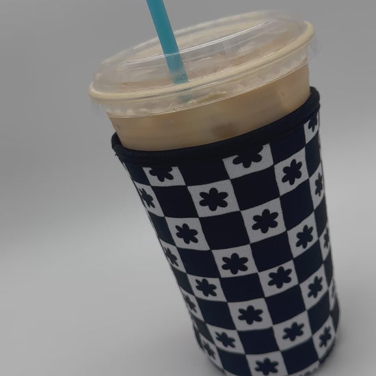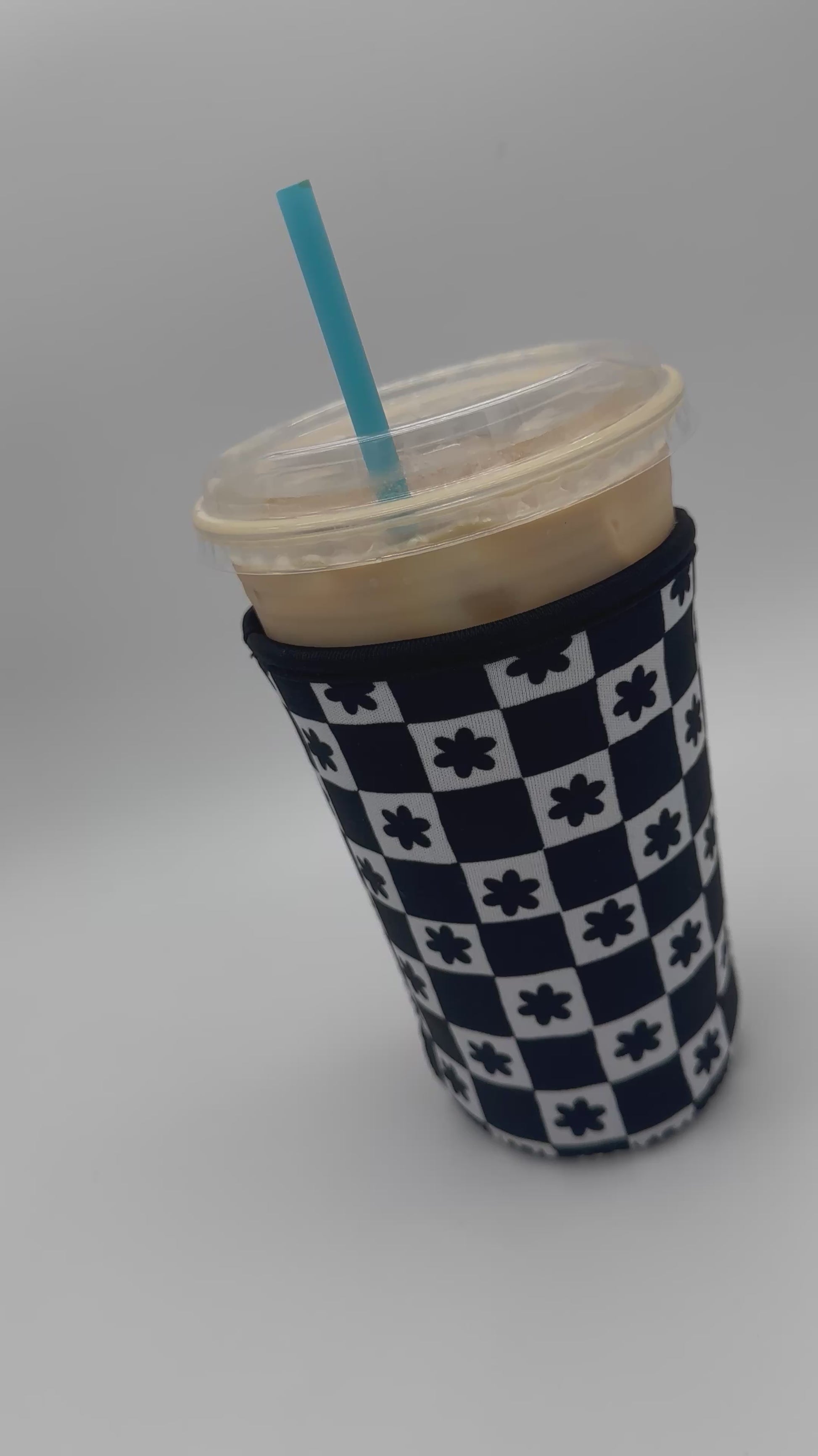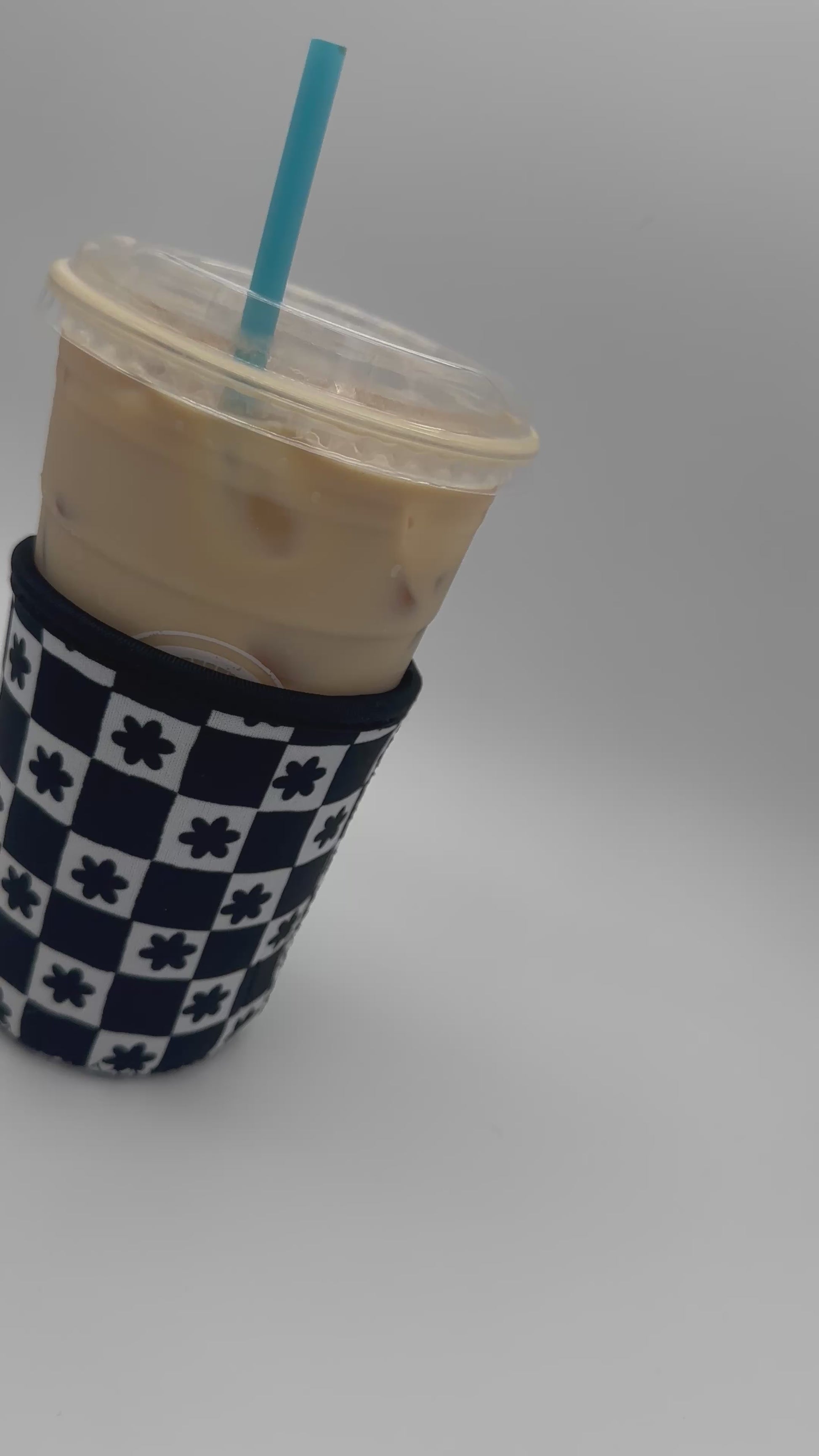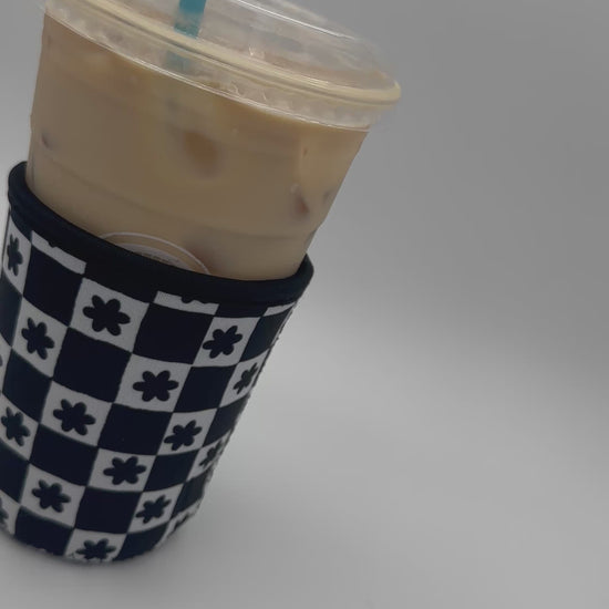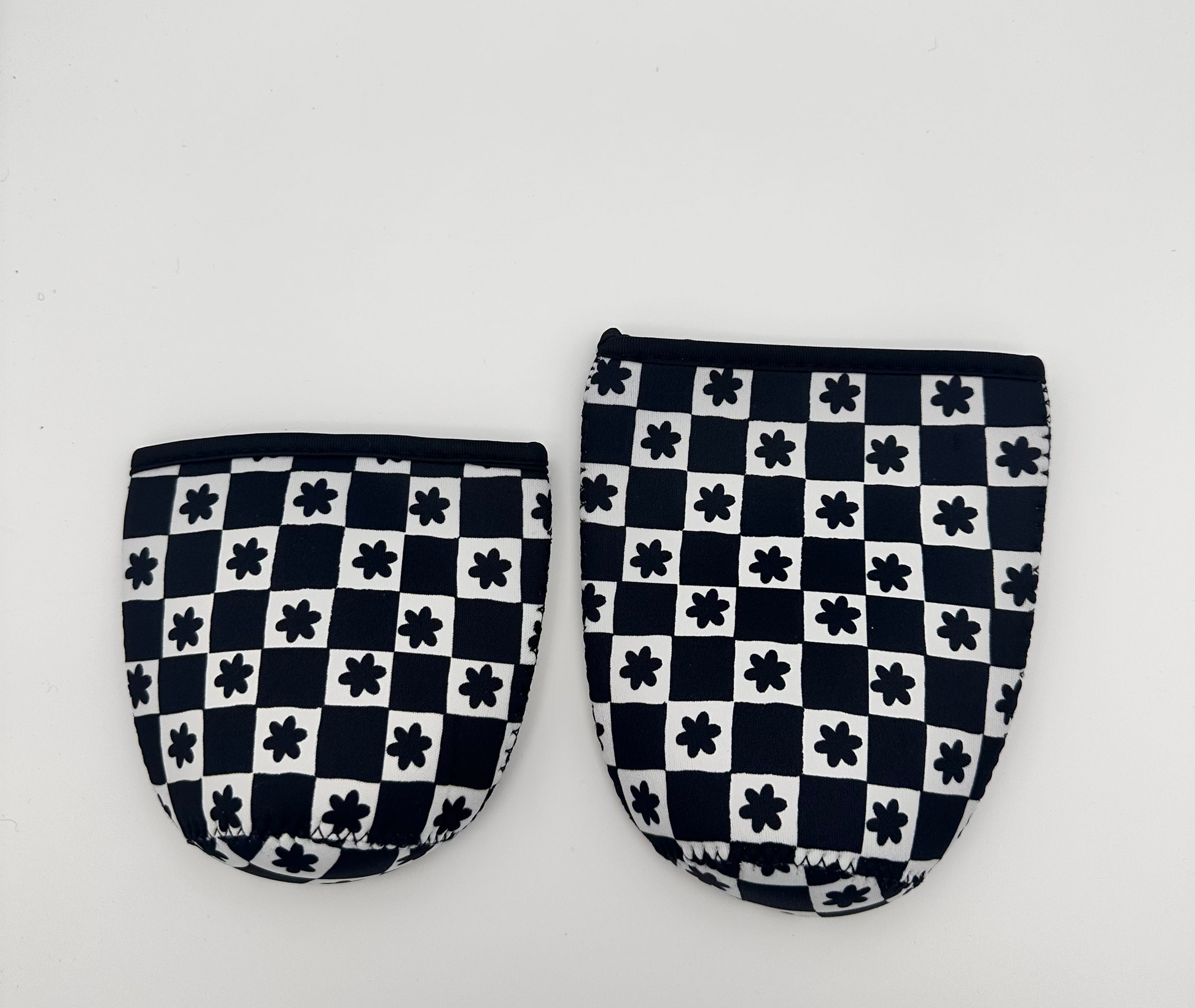 Black Floral Checkered SHORT & TALL Coffee Sleeve Coozies - Sweat Proof & Cute