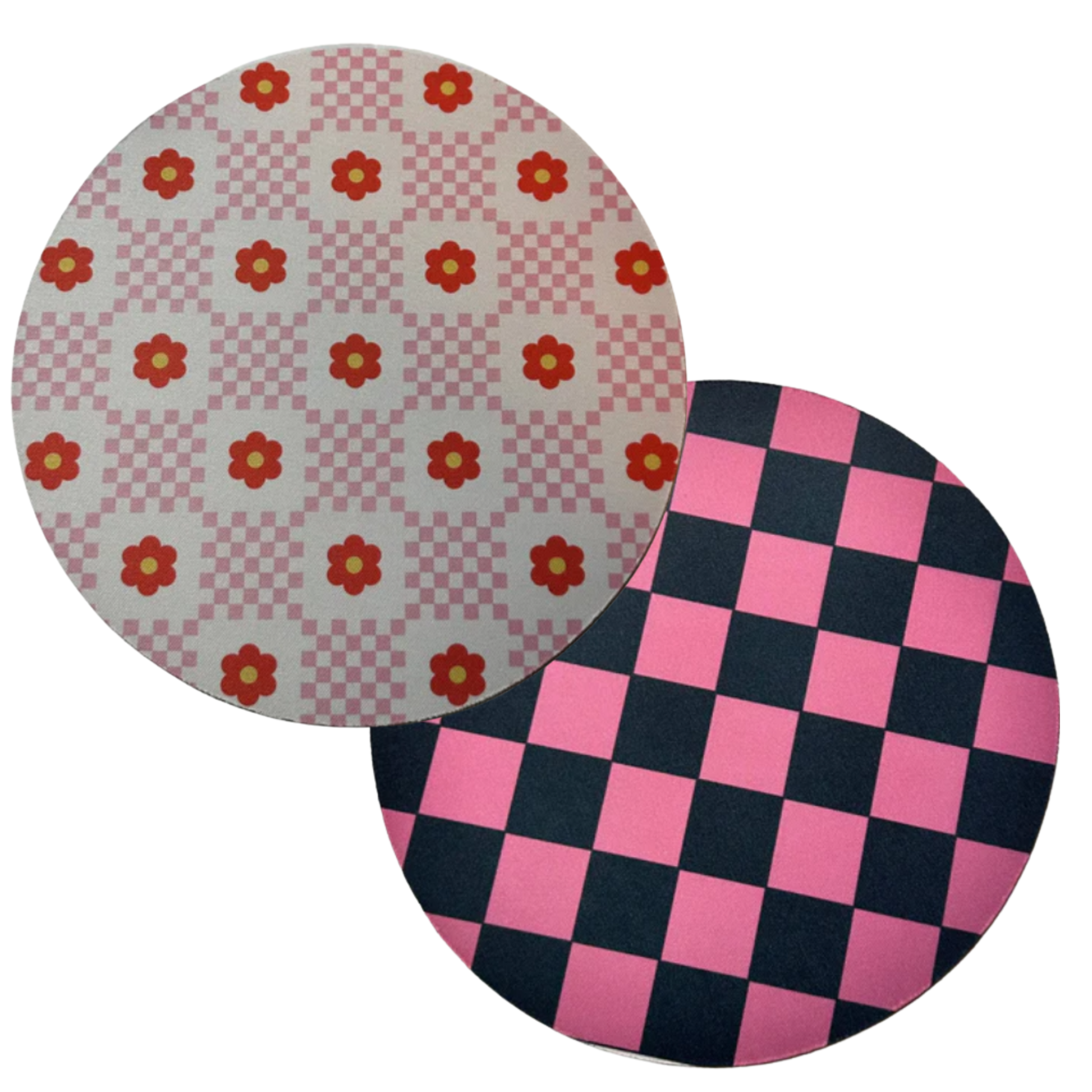 Handmade Computer Mousepads 8" Polyester. Checkered, Floral, Strawberry, Bows Sublimation Printed for Durability and Style